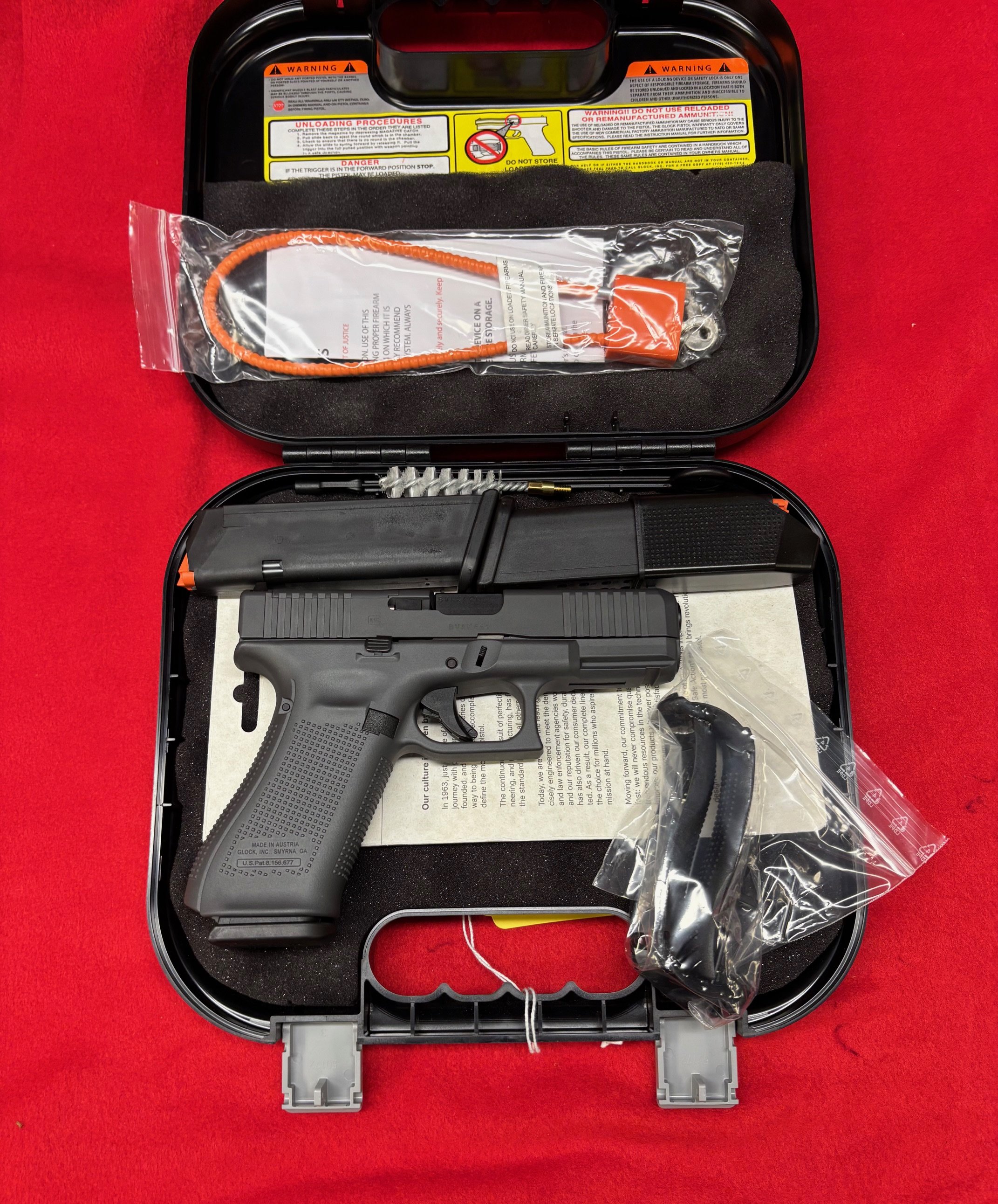 New in the box. Cerakote Finish TRUMP 2024 GLOCK 45 MOS GEN 5. Compact Crossover G19 slide and G17 frame. Modular Optics System makes it easy to mount a reflex sight.Three 17 round magazines. out of stock everywhere else.